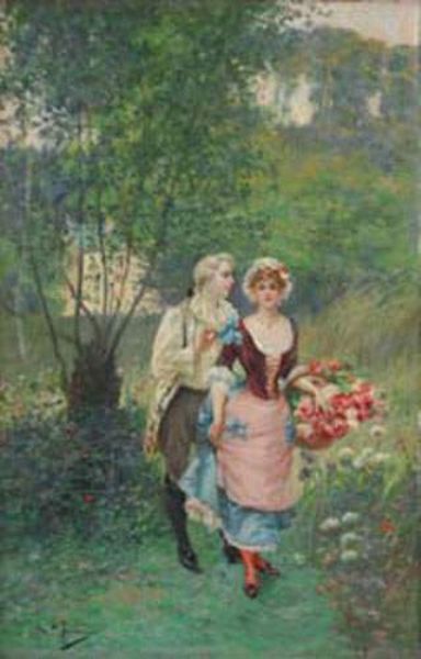 Scène galante dans un parc