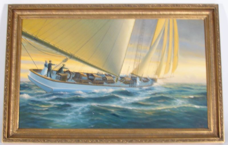 Sunset cruise of a two-masted schooner with yacht, with captain, crew and guests aboard
