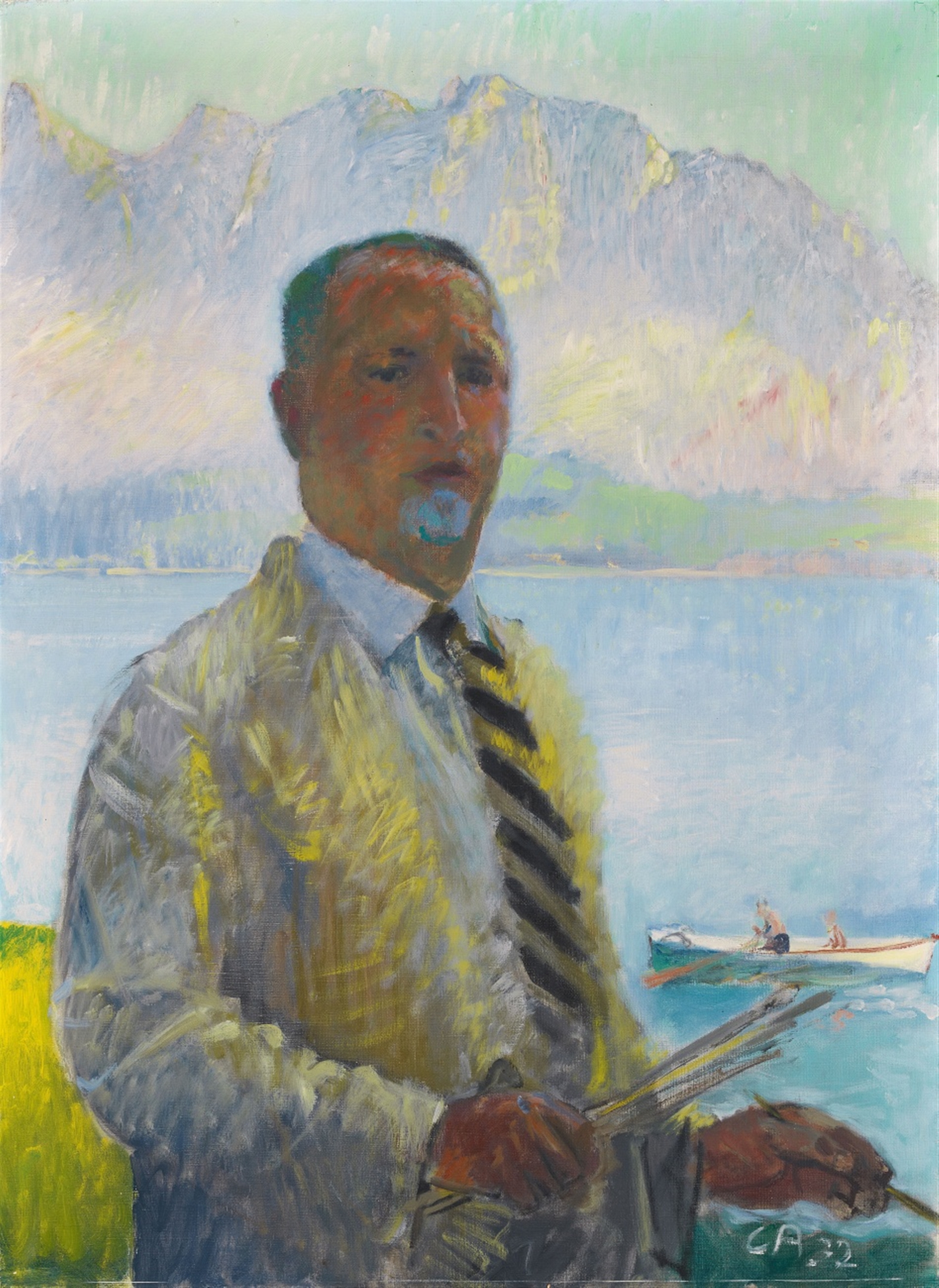 Selbstbildnis (Selbstporträt vor Bergkette)