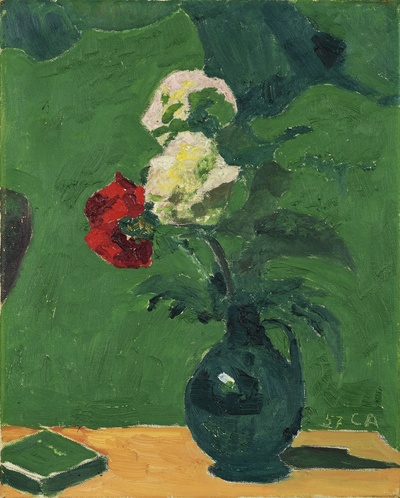 STILLLEBEN MIT BLUMENSTRAUSS IN GRÜNER VASE, 1957