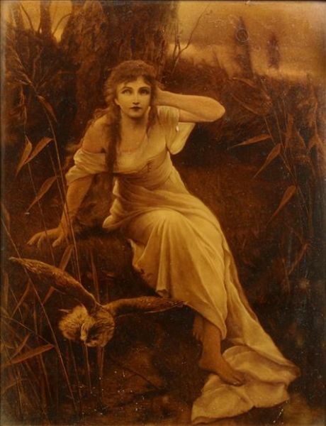Maiden seated on a grassy bank Crystoleum