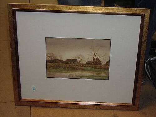 River landscape with cottage and sheep