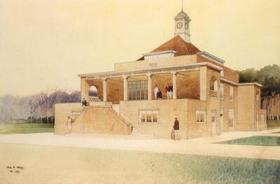 | A DESIGN FOR THE MEMORIAL CRICKET PAVILION, CITY OF LONDON SCHOOL (1923) | |