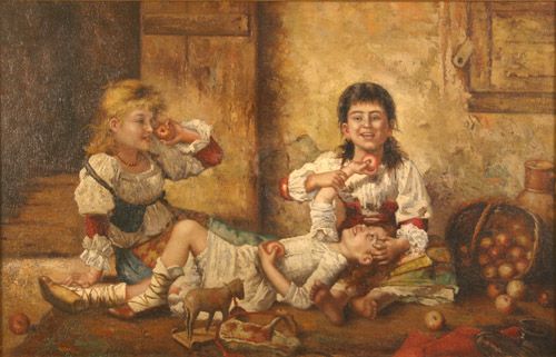 Children playing with Apples within an Interior