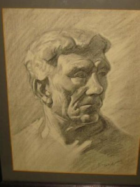 | Chalk black chalk heightened with watercolour in orange and green, framed | |