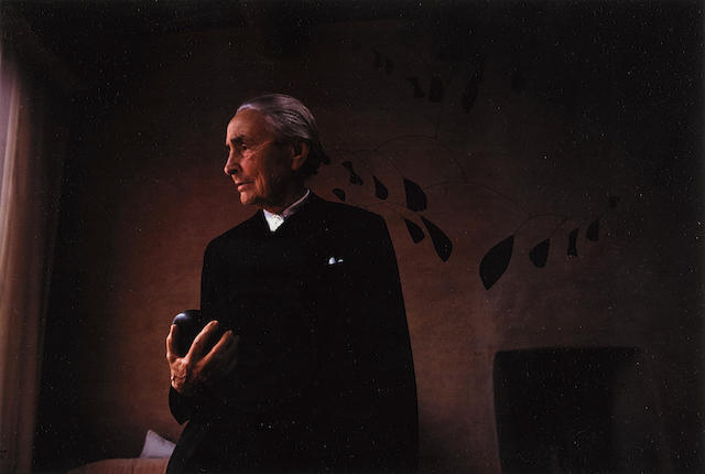 Georgia O'Keeffe holding Chama River stone, Abiquiu, New Mexico