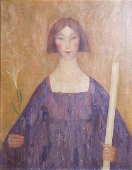 Woman Holding a Lily and a Candle