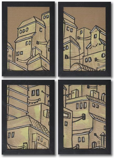 Miasto (cztery obrazy oprawione oddzielnie)