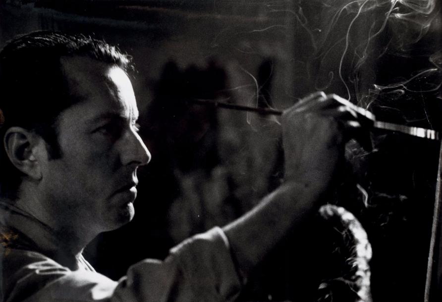 Bernard Buffet Portrait de Bernard Buffet le pinceau à la main.