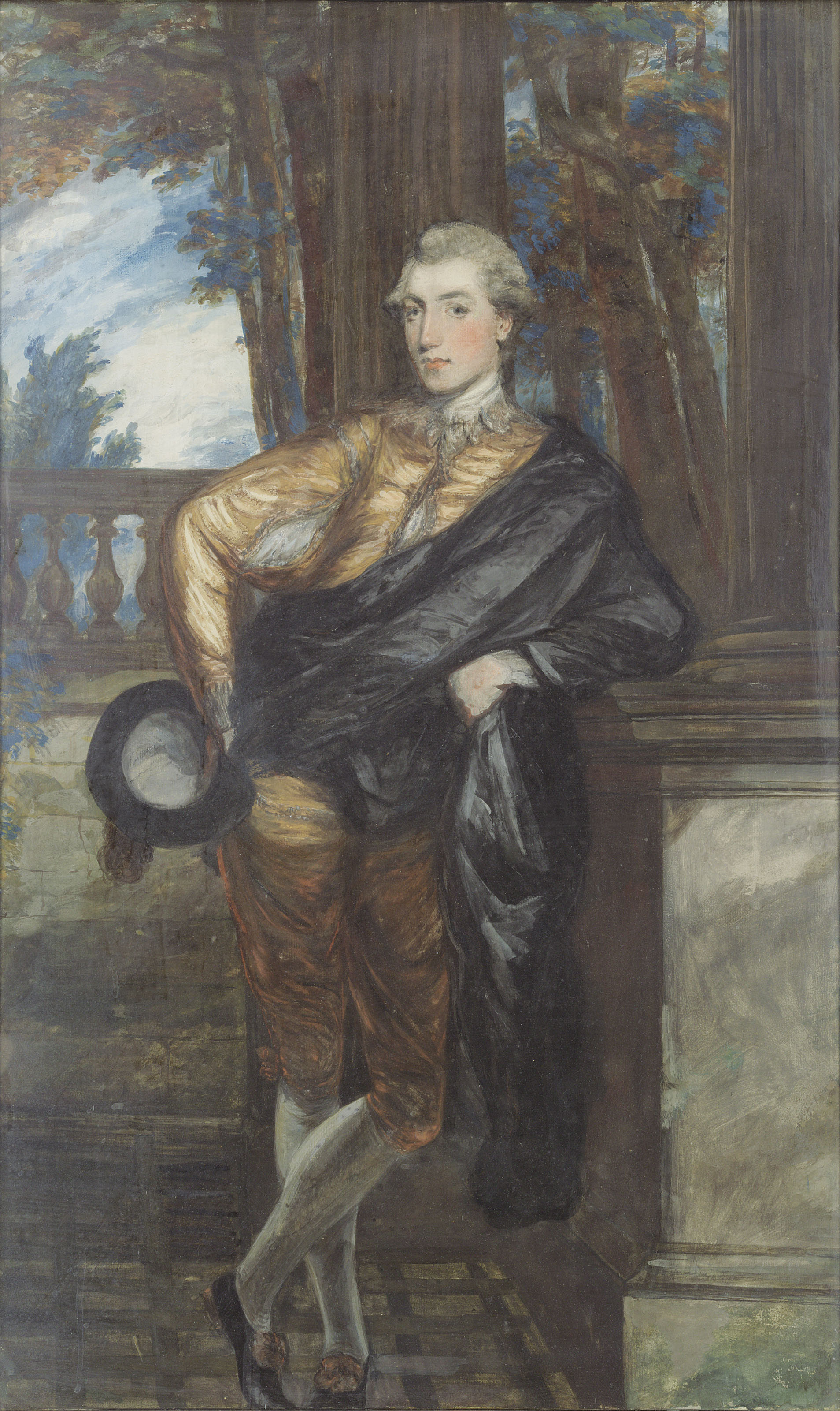 | Portrait of Viscount Castlereagh, small full-length, in gold coat and black cape, standing in a wooded landscape | |