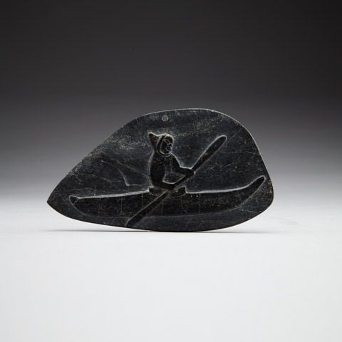 ETCHED WALL PLAQUE WITH SCENES OF A KAYAKER AND OTTER