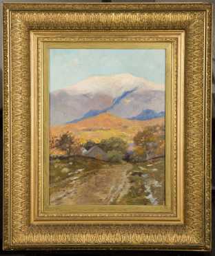 | of a snow capped mountain possibly Mt. Washington as seen from his studio | |