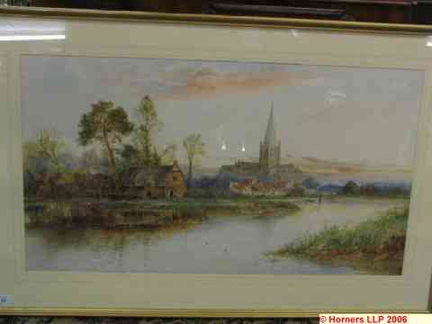 Norwich Cathedral Viewed from the River Wensum with a Thatched Building in the Foreground