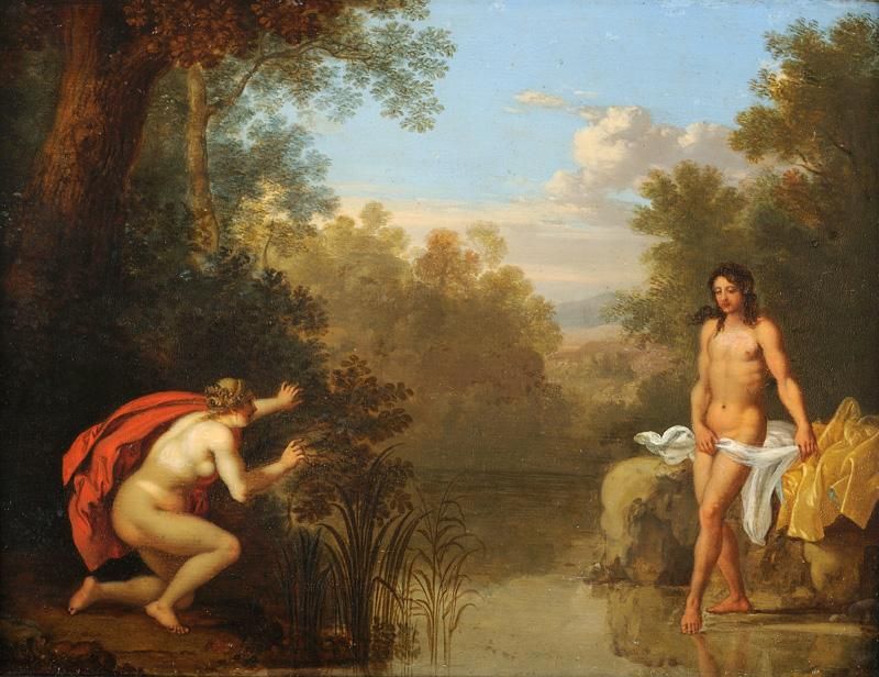 De bergnimf Salmacis bespiedt de badende Hermafroditus