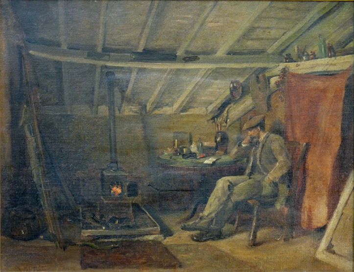 PORTRAIT OF THE ARTIST IN A COTTAGE INTERIOR