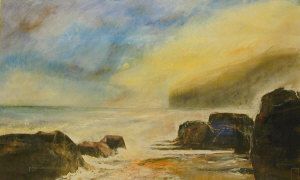 | 'Sunrise at Reighton Gap looking into Filey Bay over Bempton Cliffs drifting sea mist' | |