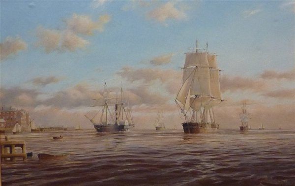 Sailing Vessels and the Humber Steam Packet Co. Paddle Steamer entering the Port of Hull