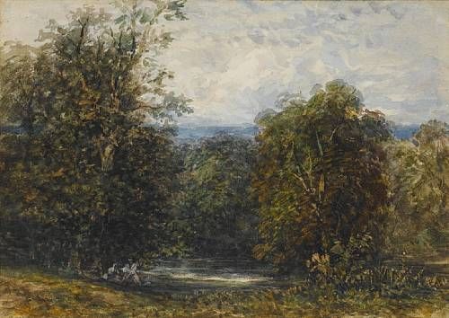 Figures by a woodland pool, near Handsworth, Staffordshire