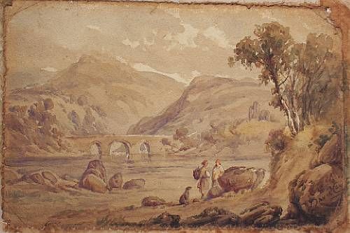 Figures in a highland water landscape