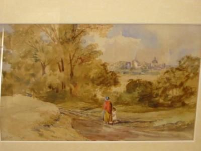 | Mother and Child on a Country Lane, Town in the Distance | |
