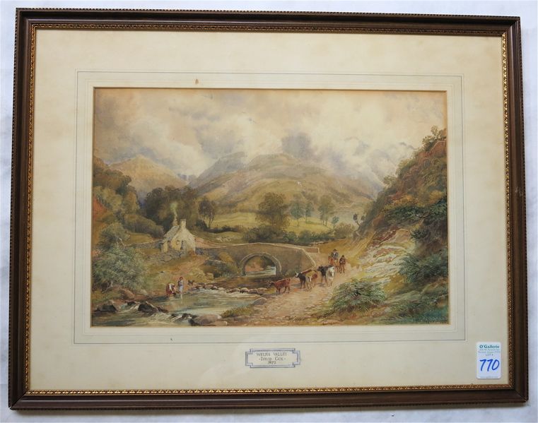 | Welsh Valley with women washing clothes and two men herding cattle | |