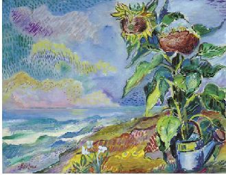 Sunflowers on the shore