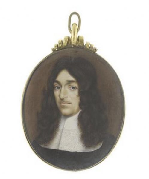 | A Gentleman, wearing black doublet and white lawn collar finished with lace, his natural hair worn to his shoulders. | |