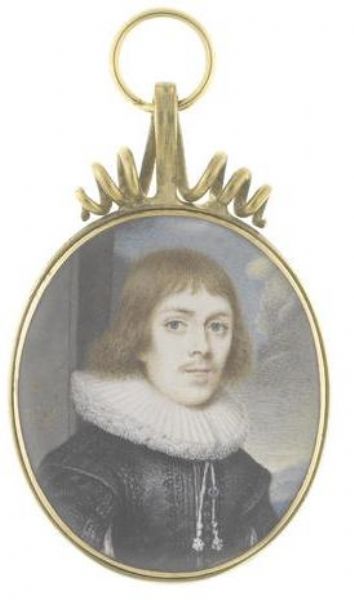 A Nobleman, wearing black embroidered doublet slashed to reveal white chemise, white lace ruff.