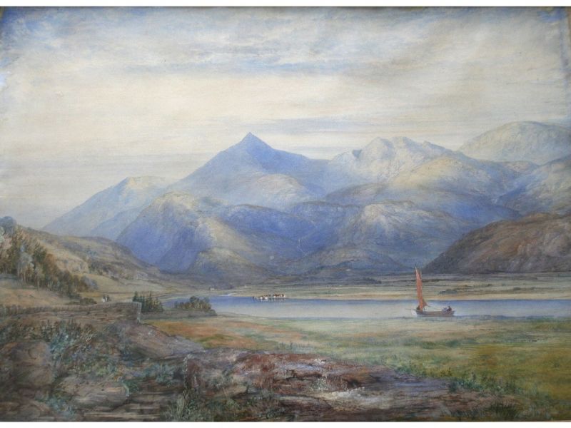 | A SCENE IN THE LAKE DISTRICT (?) WITH FIGURES IN A BOAT | |