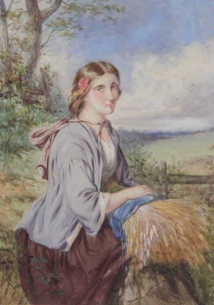 PORTRAIT OF A YOUNG LADY HOLDING A WHEATSHEAF