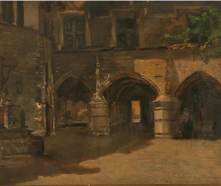 Yard scene, presumably frotm the Cluny Museum in Paris.