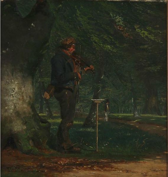 | The travelling fidler, Niels Hemmingsen, at the entrance to Dyrehaven | |