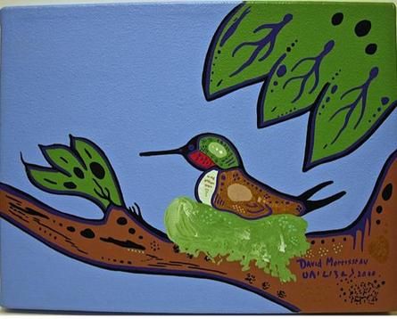 HUMMINGBIRD NESTING; LOON FAMILY BY WATER