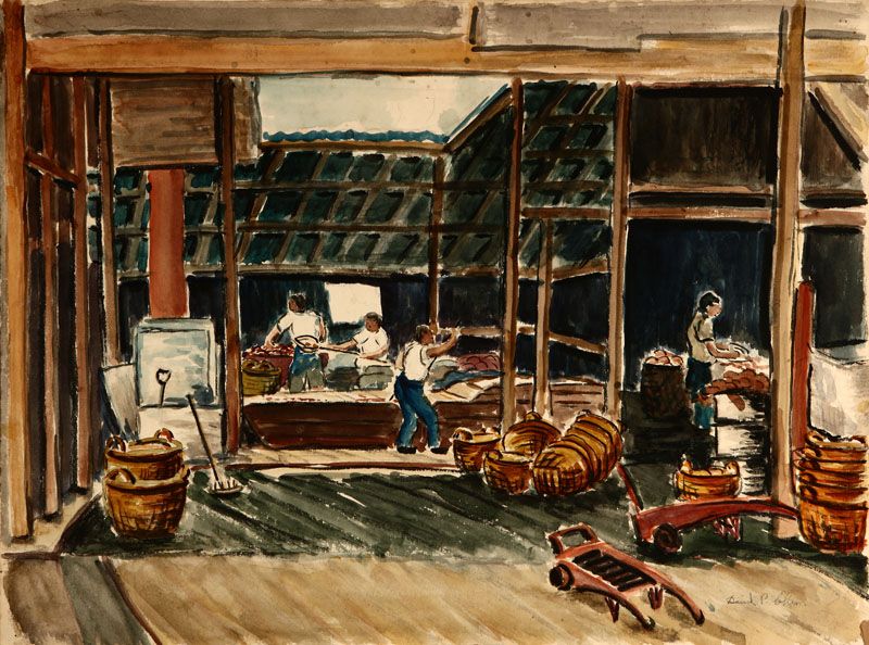 Chinese Figures Processing Food, Possibly a Shrimp Camp