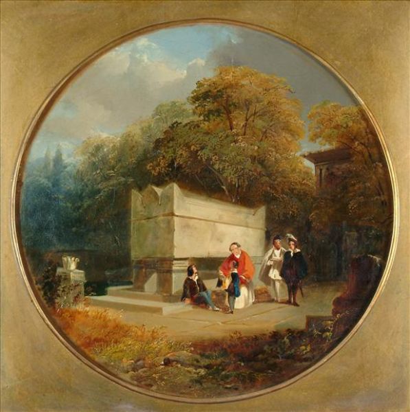Figures by a tomb