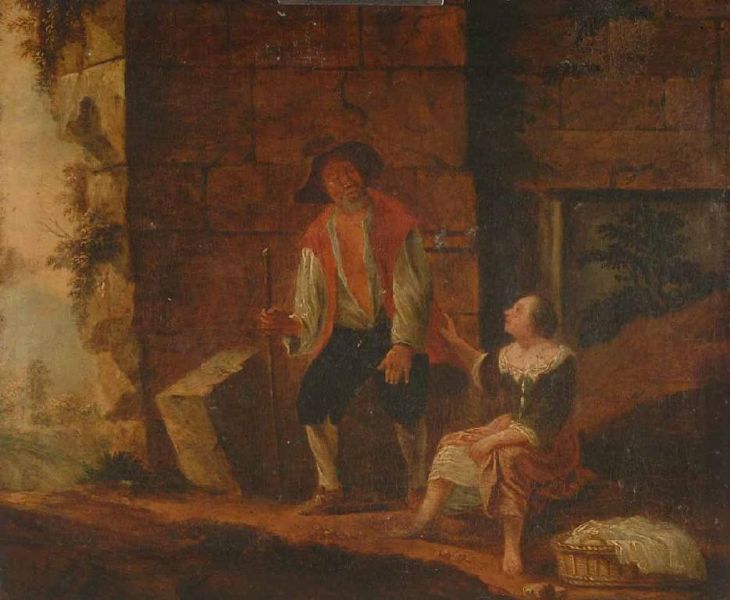 AN OLD PEASANT AND A WOMAN BY RUINS