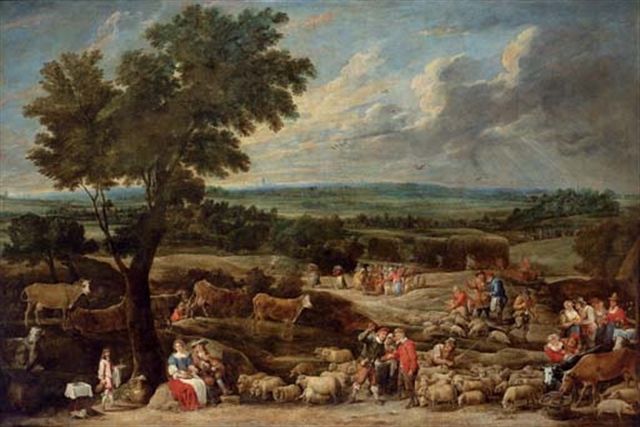 | A livestock market in an extensive landscape with Antwerp in the distance | |
