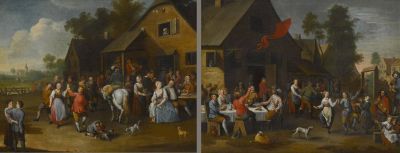 Dorfkirmes mit feiernden und tanzenden Bauern