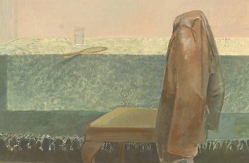Table, chair, mirror and jacket.