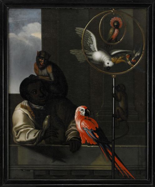 Pojke med papegojor och markattor