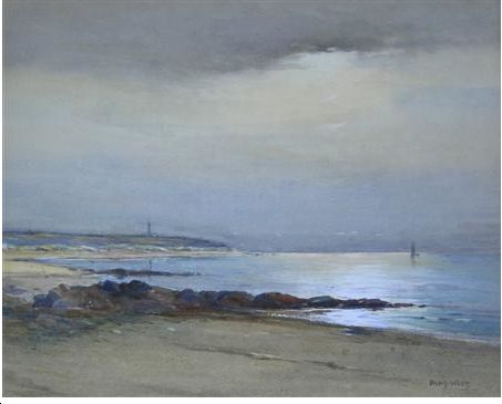 A COASTAL SUNSET WITH A LONE SAILING BOAT