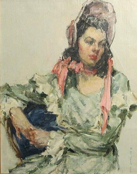 A Portrait of a Seated Lady with a Bonnet and Pink Scarf
