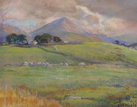 Irish landscape with mountains in the distance