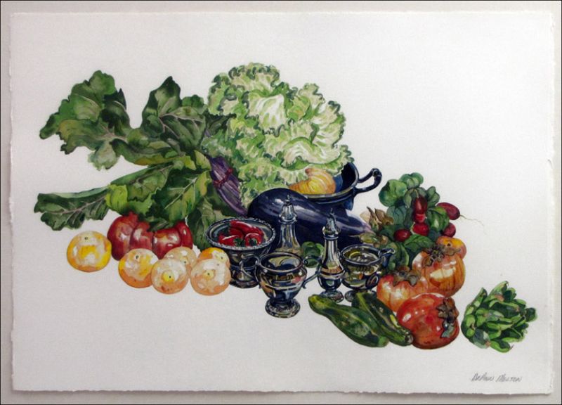 STILL LIFE WITH LETTUCE, ZUCCHINI AND EGGPLANT
