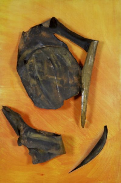 Paper Mache forms on pierced orange canvas (1965)