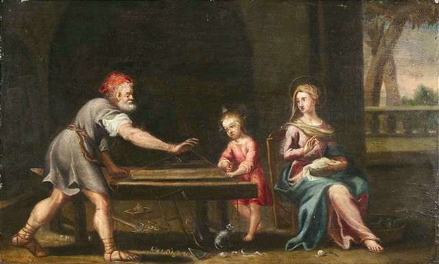 Young Jesus in the carpenter's workshop