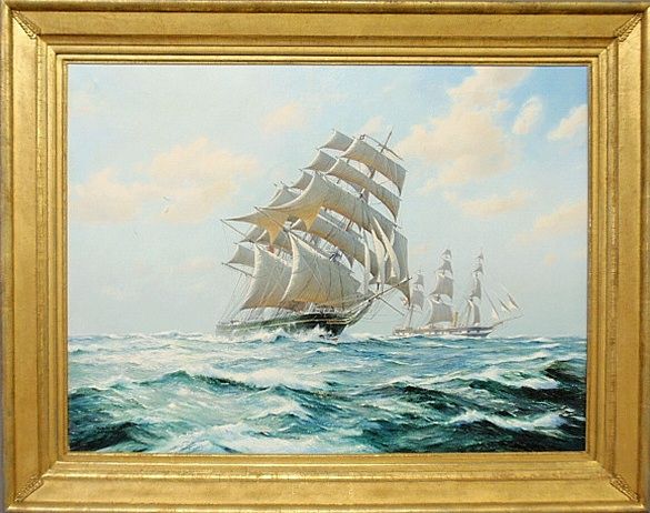 | painting of sailing ships titled verso Almandares & Nightengale | |