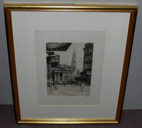 | Vue de la Bourse et de l'Hôtel de Ville de Bruxelles, depuis la rue Orts | |
