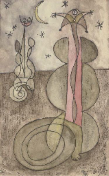 Oil (printer's ink) and watercolour