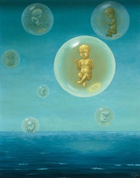 | Belofte (-Zeegezicht, waarboven zwevende luchtbellen met ongeboren kinderen-) no.118 | |